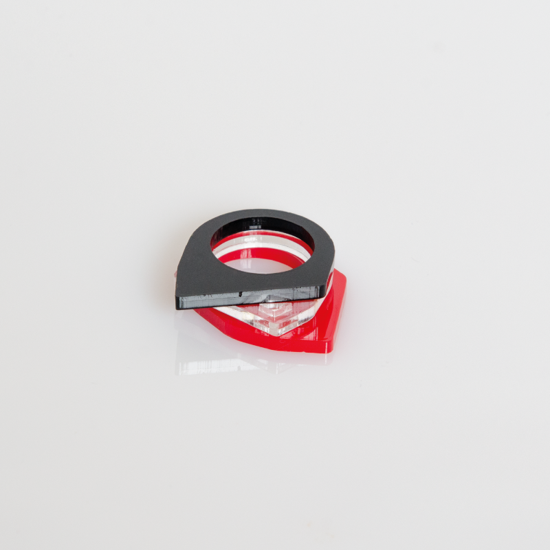 “L’ anello propone le varie sfaccettature che ogi donna ha dentro di se. Il rosso, il bianco ed il nero convivono in armonia fra loro. Dedicato a chi vuole stupire ogni giorno.”